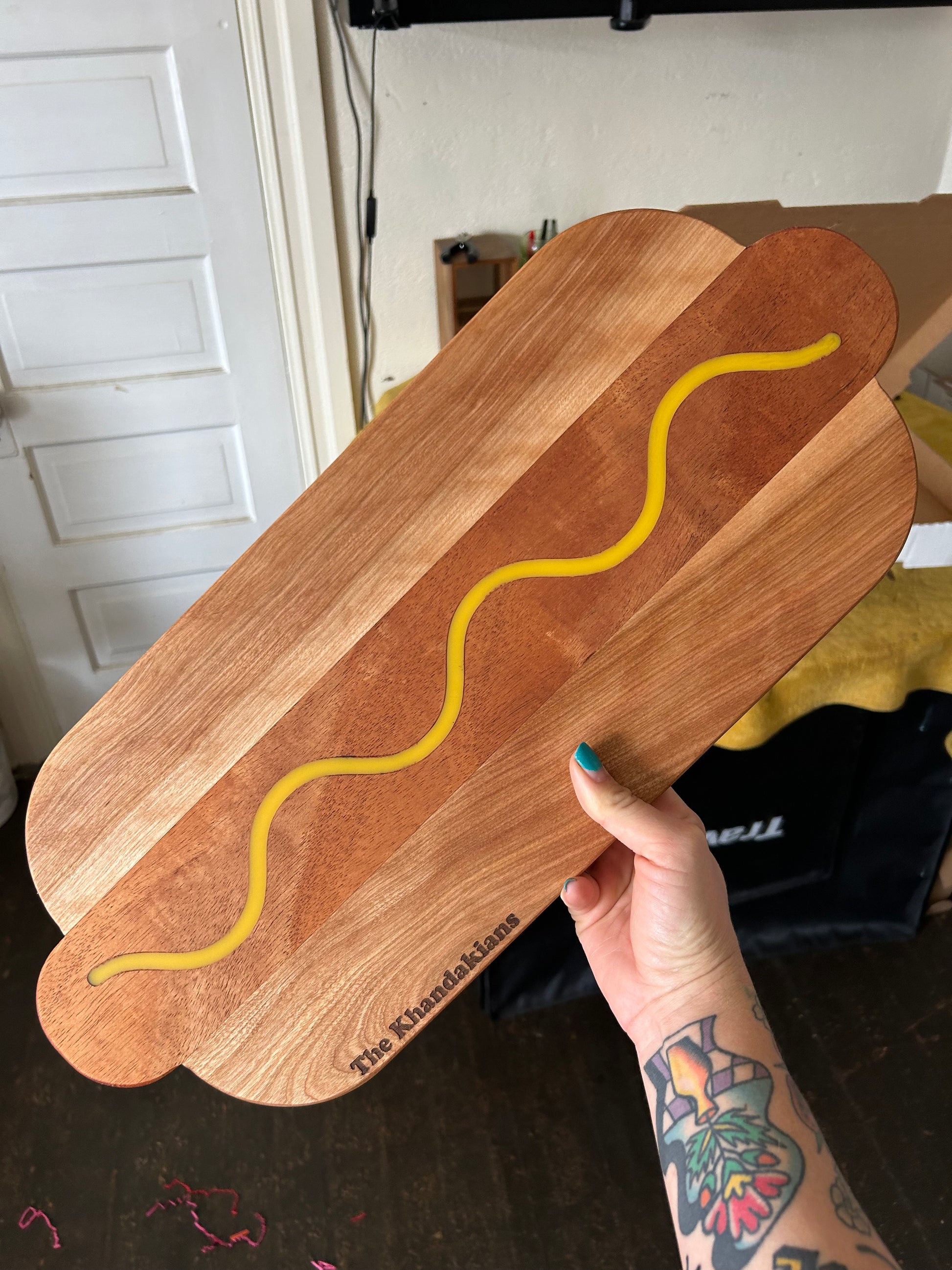 - Mahogany, birch and yellow "eco-poxy" filled groove